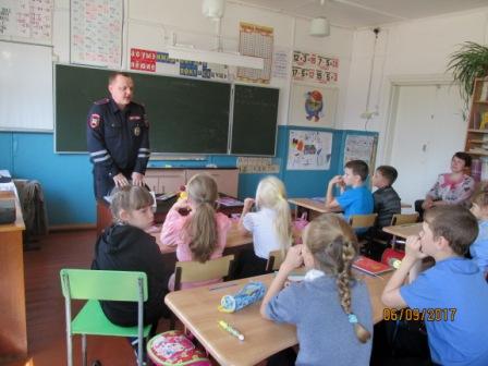 6 сентября 2017 г. инспектор по пропаганде ПДД  Софин Д.В.  провел беседы о правилах  дорожного движения с учениками нашей школы.